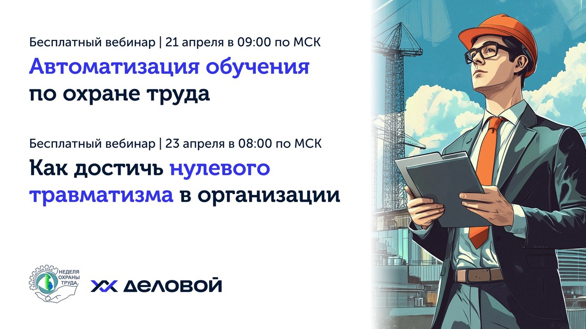 🚀 Приглашаем на наши новые мероприятия по актуальным темам в сфере безопасности труда, которые пройдут 21 и 23 апреля. Вас ждут практические решения для автоматизации обучения и достижения нулевого травматизма. ❗️ Важно: на каждое мероприятие требуется отдельная регистрация. 📌 Вебинар 21 апреля: «Автоматизация обучения по охране труда: как сэкономить время и повысить эффективность» Основные моменты вебинара: • Как выбрать оптимальный формат обучения • Эффективные методы повышения вовлеченности сотрудников • Современные технологии цифровизации обучения • Как вернуть до 100% затрат на платформу обучения через СФР 🎁 Для всех участников вебинара: Инструкция по возврату средств за платформу обучения и сертификат участника в электронном формате 📝 Спикер: Анатолий Стецура Руководитель разработки программного обеспечения для управления обучением по охране труда в «Деловой ТЕХ». 👉 Зарегистрироваться на вебинар 21 апреля 📌 Вебинар 23 апреля: «Принципы планирования и этапы выполнен