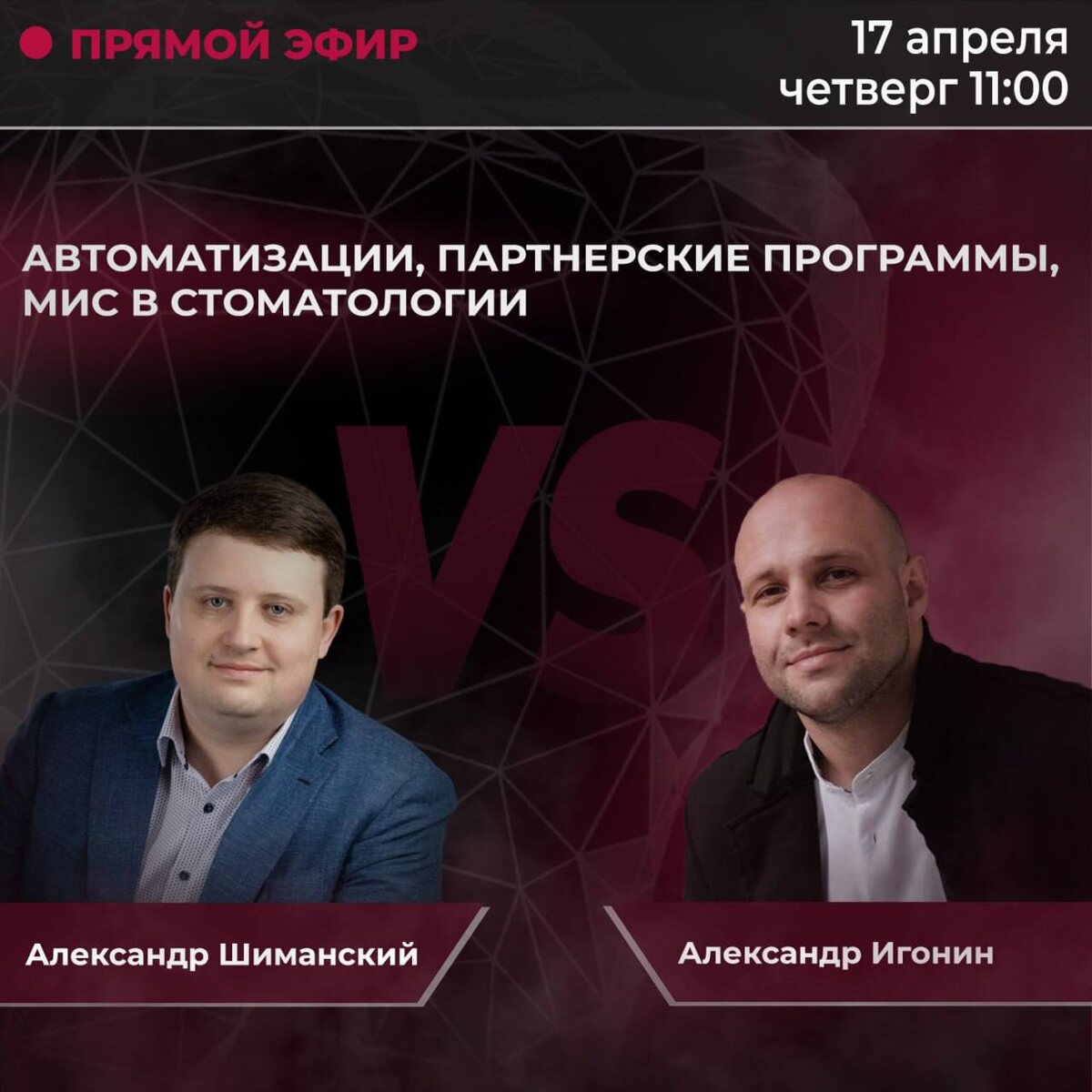 DentalPRO сегодня в эфире, присоединяйтесь 🔥 🔔 17 апреля, 11:00 по мск 🦷 Александр Шиманский (основатель DentalPRO) вместе с Александром Игониным (директором по развитию группы компаний МЕДО) выйдут в эфир, чтобы рассказать о важных аспектах эффективной работы стоматологии: автоматизация, партнерские программы и внедрение МИС в стоматологические клиники. Как оптимизировать работу, привлекать пациентов и эффективно использовать ресурсы? Узнаем на эфире! 🔗 Встречаемся по ссылке ➡️ Задать вопрос и поделиться мнением Увидимся сегодня в 11:00 по мск 💘
