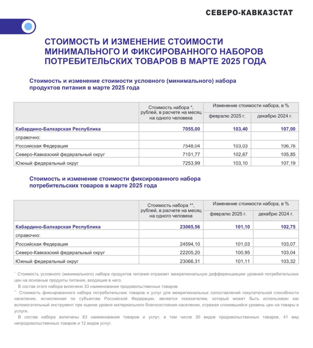 По официальным данным, на 7% выросла в марте с начала года стоимость минимального набора продуктов питания в Кабардино-Балкарии, составившая 7055,00 руб. Стоимость фиксированного набора потребительских товаров в КБР в марте — 23065,56 руб. Это выше, чем по СКФО (22205,20). С начала года рост составил 2,75%. @gazetayuga