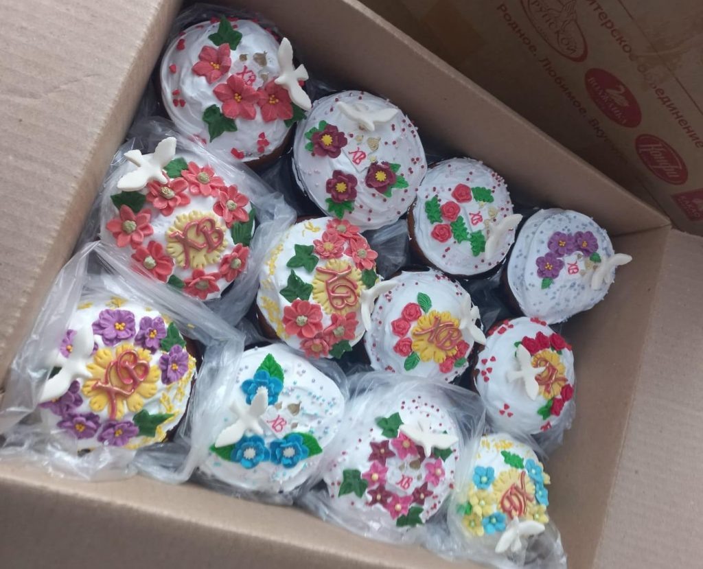 Эту коробку привез Иван из Таганрога от своей женушки Ольги, одной из наших мастериц…Красота и вкуснятина! Парни не раз благодарили Ольгу и других наших хозяюшек за приготовленную для них домашнюю еду. в посылке -40 куличей! К завтра, в пятницу привезет такой же подарок Евгения из с. Синявское, которая вместе со своими односельчанами тоже готовит пасхальные гостинцы нашим защитникам, — сообщает руководитель группы Ольга Матвеенко.