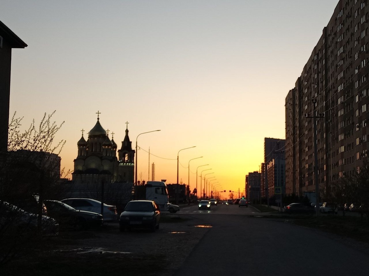 Вчерашний закат в Ставрополе. Андреевский собор💚💜💗