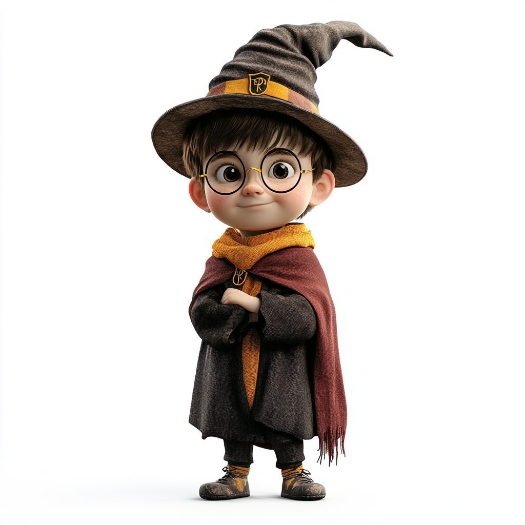 Создано на основе запроса: a cute kid dressed up as harry potter wearing the sorting hat, hand drawn 3d render drawing, on white background