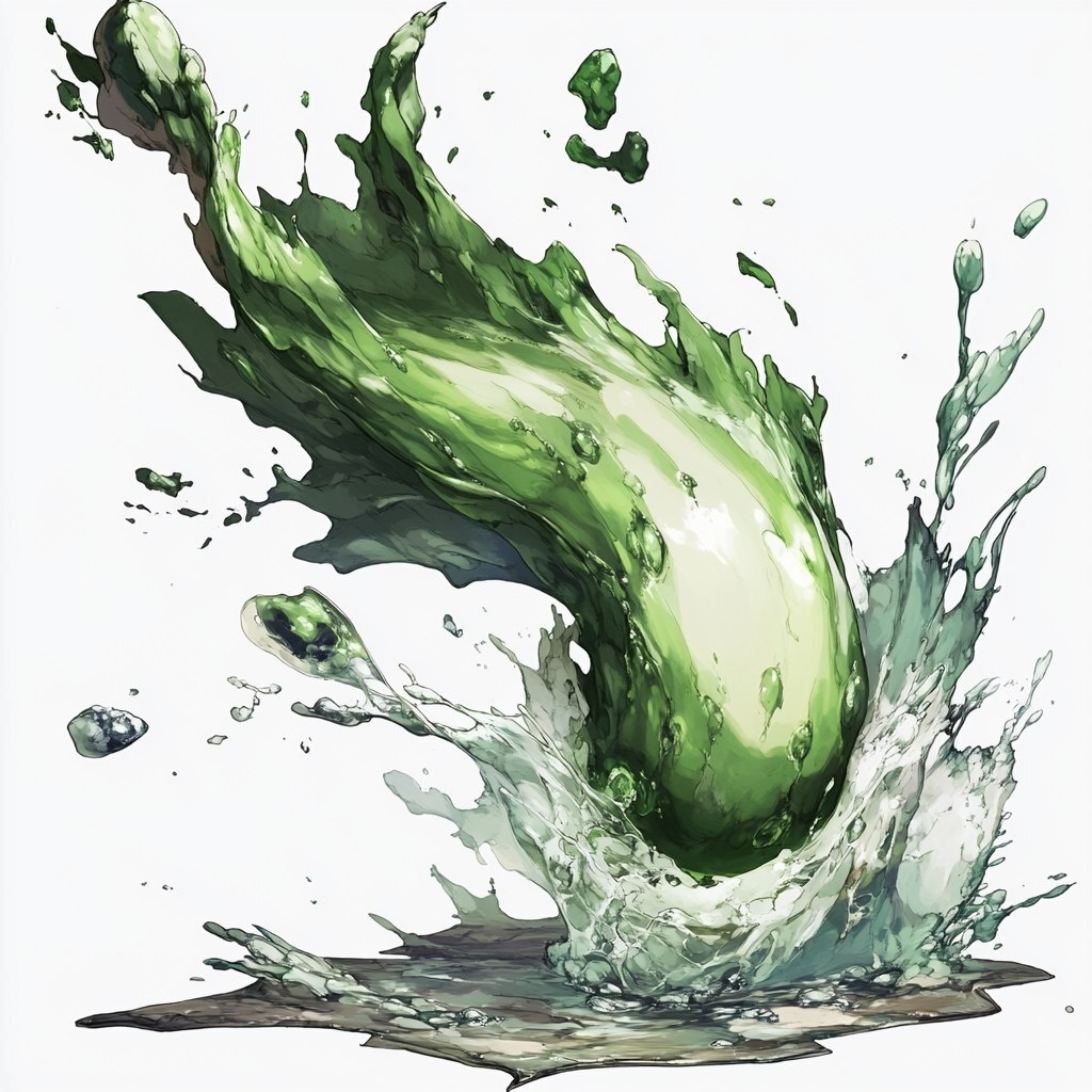 Создано на основе запроса: Green animated Slime, Shapeless, Semi-transparent