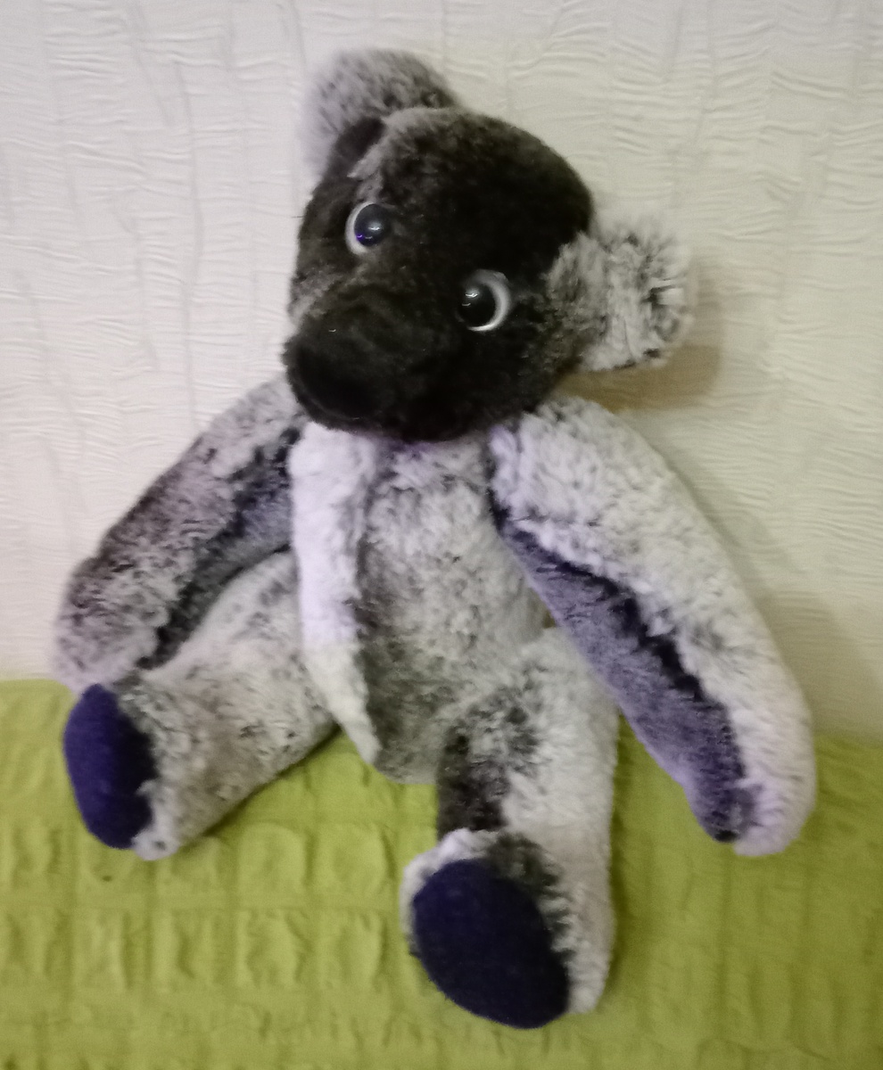 Всем привет! Вот такое чудо - юдо у меня получилось. Назову его Капюшон. Это мишка, хотя он немного мордочкой похож на собачку. Недавно выбросила старый пуховик, а капюшон предусмотрительно оставила. Все свои игрушки я шью из вторсырья.Большой получился из пледа, а синий из джинсели. Для крепления нужны диски и шплинты. Но все это продаётся наборами в больших количествах. Мне много не надо. Я делала крепление, с помощью ниток и пуговиц. Неожиданно появилась идея попробовать для крепления лап и головы "барашки" . Дисками послужили крышки от молочных бутылок. В результате получился мишка инвалид.Голова почему-то села не ровно,но зато она поворачивается и держится надёжно. Нижние лапы плотно закрутить не удалось и он не стоит. Хотя я надеялась,сделать его стоячим. Первый блин получился комом, учту ошибки. Конечно все мои игрушки далеки от совершенства, но я их люблю и делать их интересно. О том что такое джинсель и как я её делала можно почитать в этой статье. P. S. Через день