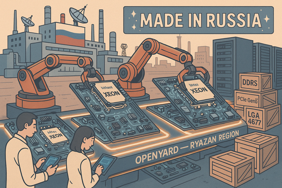 В России началось серийное производство материнских плат под серверные процессоры Intel Xeon четвёртого и пятого поколений. За выпуск отвечает компания OpenYard, разместившая мощности в Рязанской области. Это не просто очередной контракт, а значимый шаг в сторону развития отечественного серверного железа с расчётом на долгосрочную независимость. Новинка базируется на чипсете Intel C741 и поддерживает сокеты LGA 4677, рассчитанные на высокопроизводительные процессоры с тепловым пакетом до 350 Вт. Плата оборудована 32 слотами под DDR5, а также интерфейсами PCIe Gen5 — всё по последнему серверному слову. Примечательно, что в производстве применяется отечественный текстолит — важная деталь для снижения зависимости от зарубежных поставщиков. Процесс сборки организован на базе OpenYard в Рязанской области. В настоящий момент серверы с этими платами проходят регистрацию в реестре Минпромторга, что позволяет использовать их в госзаказах и корпоративном секторе, где наличие российских компонент