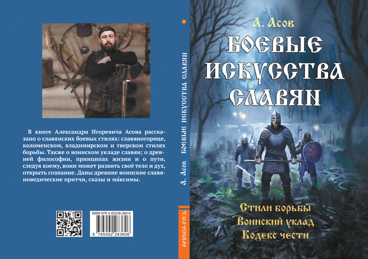 Заказать можно в Вальдберрис и везде в инет-магазинах Аннотация: В книге Александра Игоревича Асова рассказано о славянских боевых стилях: славяногорице, коломенском, владимирском и тверском стилях борьбы. Также о воинском укладе славян; о древней философии, принципах жизни и о пути, следуя коему, воин может развить своё тело и дух, открыть сознание. Даны древние воинские славяноведические притчи, сказы и маскимы. Начало книги: Русь имела в прошлом и имеет ныне великие воинские традиции. Русское воинство спокон веков славится повсюду, почитается непобедимым. Потому Русь — в старину Русколань, ныне же Россия, — раскинулась на полсвета... Славяне всегда имели особое искусство биться в ущельях, теснинах, скрываться в высокой траве, уходить под воду на много часов, дыша через тростинки, стойко переносили всевозможные лишения и не боялись смерти. Ибо славяне полагали, что в бою смерть обходит стороною смелых. «Смерть нам не страшна — она нас боится!» — говорил Александр Суворов. Поразит
