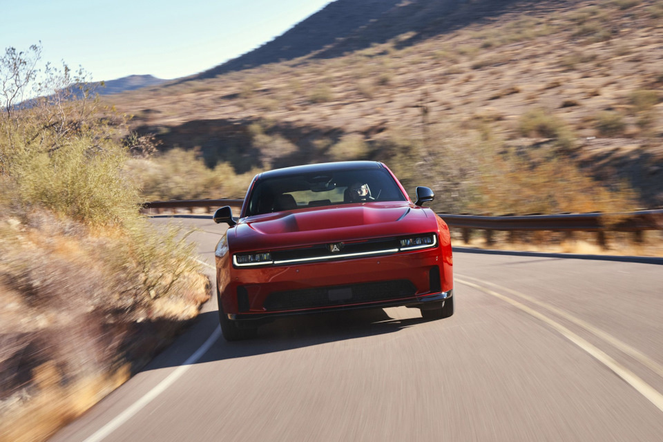 Daytona проносится по разбитому асфальту Шоссе 66 словно конькобежец по недавно залитому катку. Его огромные летние шины Goodyear Eagle F1 SuperCar 3 (305/35ZR-20 спереди и 325/35ZR-20 сзади), предлагаемые в качестве опции, цепляются за несовершенства дорожного покрытия и слегка покачивают корпус, позволяя автомобилю быстро реагировать на корректировки обода. В крутых скоростных поворотах и на оживлённых городских перекрёстках Charger не беспокоит водителя и кажется очень комфортным. Он на удивление хорошо замедляется, учитывая снаряжённую массу: для остановки с 70 миль/ч (112,6 км/ч) ему требуется всего 151 фут (46 метров) — на 4 фута (1,2 метра) больше, чем его бензиновому предшественнику, и он уверенно противостоит электрическим конкурентам от BMW и Hyundai (спасибо 16,1-дюймовым тормозным роторам с каждой из четырёх сторон). Daytona позволяет выбрать один из трёх уровней интенсивности рекуперативного торможения с помощью лепестков за рулевым колесом.