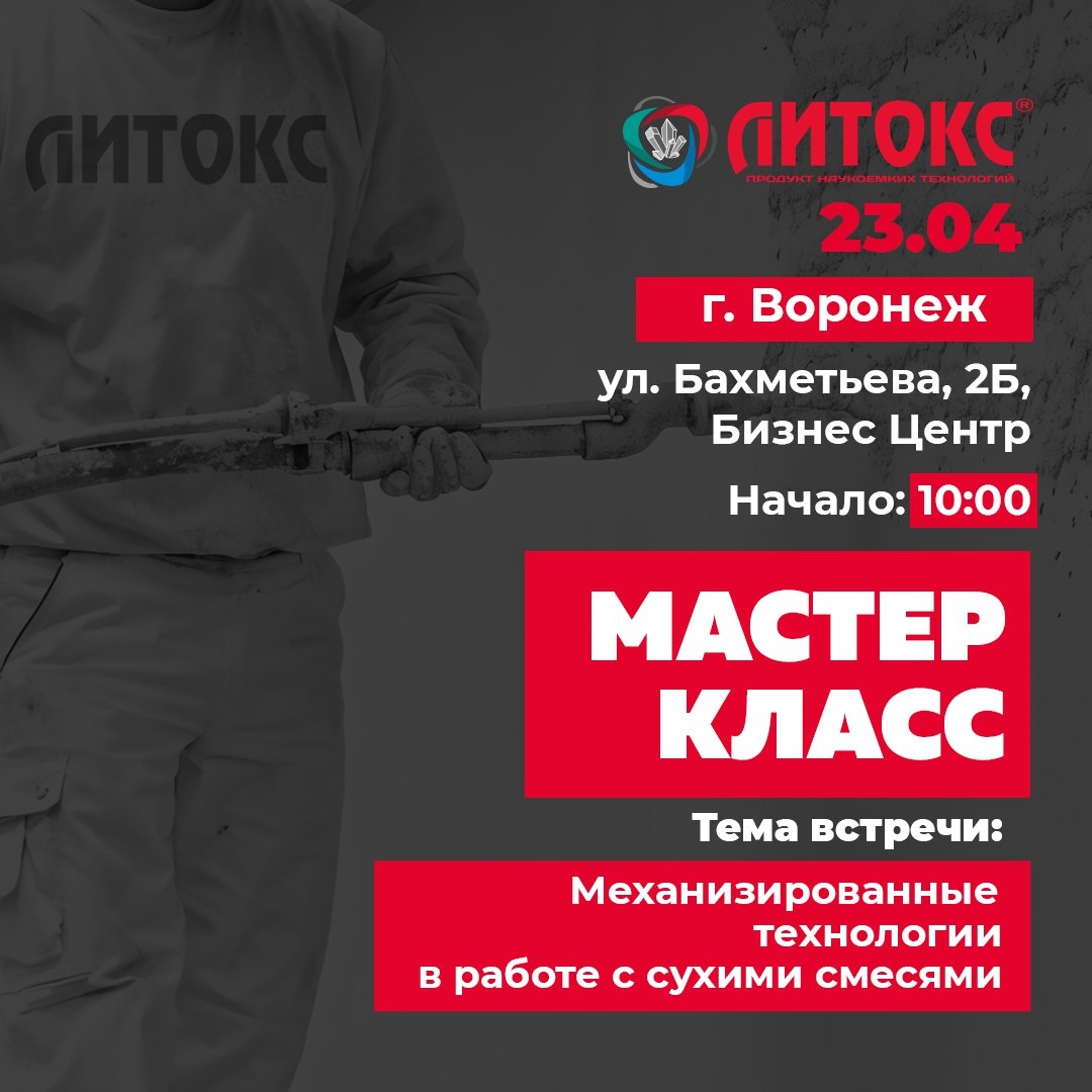 🔧 БЕСПЛАТНЫЙ МАСТЕР-КЛАСС по механизированной штукатурке в Воронеже! 📣Команда ТМ «ЛИТОКС» приглашает мастеров, прорабов и всех, кто работает с отделкой, на живое обучение! 🔍 В программе мастер-класса: ✔️ Полное погружение в механизированную штукатурку: оборудование, материалы, технология ✔️ Ответы на ваши вопросы от технических специалистов ТМ ЛИТОКС ✔️ Презентация профессиональных решений для больших и малых объектов ✔️ Розыгрыш призов среди участников! 📆 Дата: 23 апреля ⏰ Время: с 10:00 📍 Место: г. Воронеж, Бахметьева 2б. 🎁 Участие бесплатное, по предварительной регистрации! 👉 Количество мест ограничено — успейте зарегистрироваться: 🔗 Перейти к регистрации