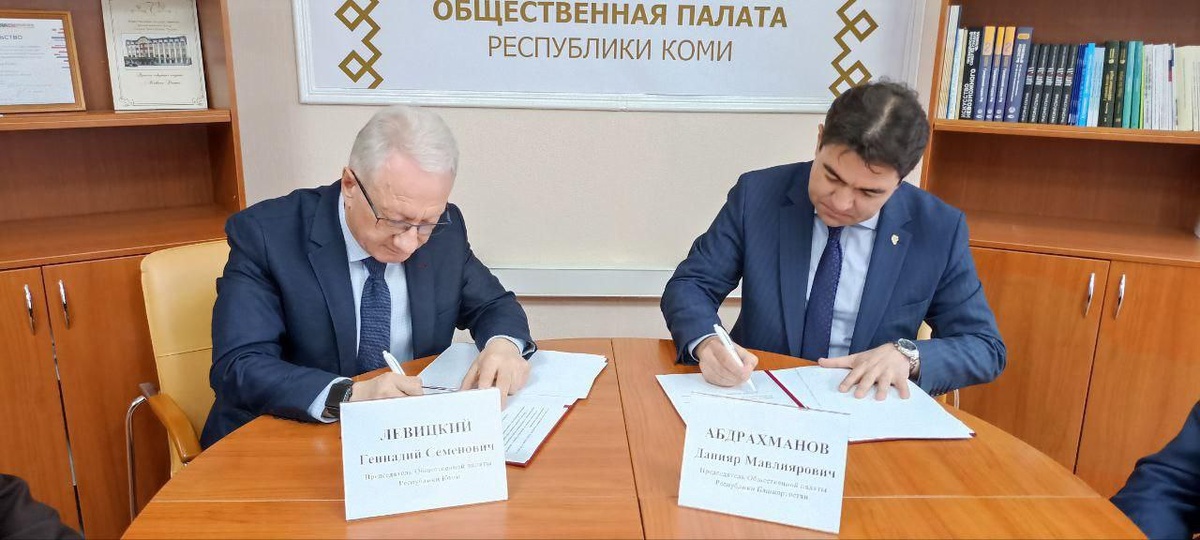 Общественная палата Коми и Башкортостана развивают сотрудничество 16 апреля в Сыктывкаре между Общественными палатами Башкортостана и Коми заключено соглашение о сотрудничестве. Подписи поставили председатели организаций Данияр Абдрахманов и Геннадий Левицкий. Председатель Общественной палаты Башкирии отметил, что сотрудничество с этим регионом было и ранее, с этого года оно будет усилено. Мероприятие прошло в рамках круглого стола на тему: «Соглашения о сотрудничестве между субъектами Российской Федерации: эффективность и формы общественного контроля». Участники в формате брифинга обсудили актуальность и значимость сотрудничества между регионами, оказание помощи и содействия в реализации проектов, инициированными палатами, коллективный поиск решений и систематизация накопленного опыта в отношении наиболее острых проблем, затрагивающих интересы населения.