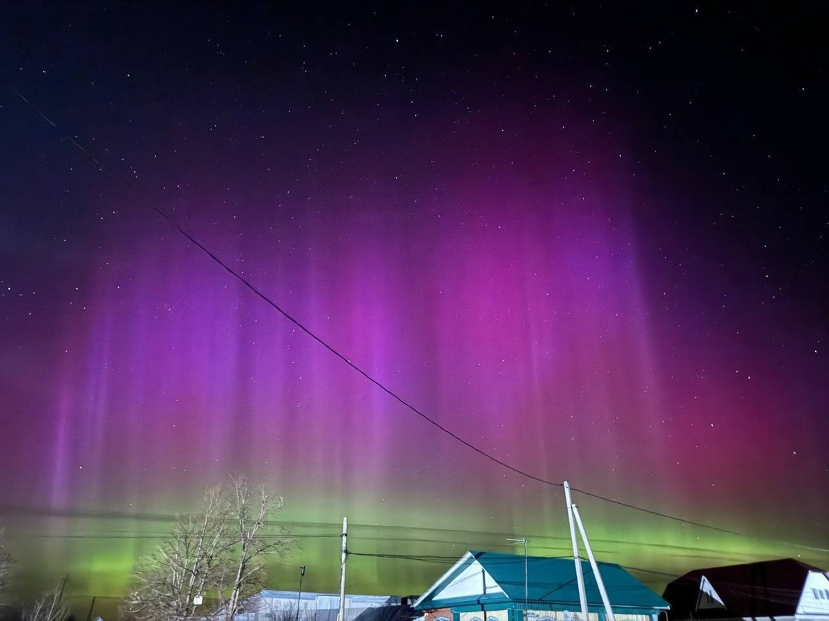 В ночь на 17 апреля жители Башкирии наблюдали северное сияние. Красивое явление видели в Стерлитамаке, а также в Абзелиловском, Белорецком, Благоварском, Илишевском и Мишкинском районах. Сияние вызвали мощные магнитные бури, которые обрушились на Землю накануне вечером. Источник: ИА "Башинформ". Фото:ТГ-канал «Моя Уфа».