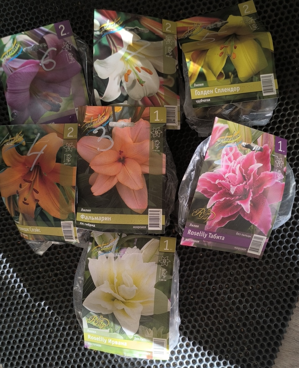 Мой хомяк беснуется и орет, у животинки весеннее обострение которое не проходит с мая 2021г., когда нам отдали ключи от нашей дачи. С осени в совместной покупке рискнула и заказала еще несколько сортов лилий, но учитывая что поставщик тот же на букву К вариант сто процентного пересорта имеется вполне. Лилии выбрала следующие сорта: трубчатые Голден сплендор, Оранж спейс, Пинк перфекшен и Регале. И обожаемые мной махровые сорта ЛА-гибрид Фальмарин и Восточные из серии Розали Табита и Ирвана. Фотографии с колес, этот парад перед рассадкой луковиц в горшки. Когда они приехали земля была еще промерзшая, да и проверку сорта лучше в горшке провести чтобы потом не откапывать и не пересаживать, сортировать удобнее будет. Номера также написаны на горшках что бы не перепутать. Желтая и оранжевая трубчатые по идее у меня уже имеются но почему бы не увеличить поголовье, тем более что стало в эту теплую зиму, с прошлогодними бедолагами зимовавшими в горшках в подполе вместе с розами расскажу в др