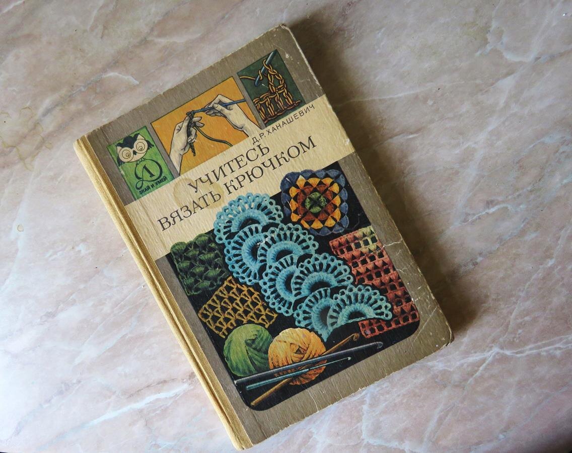 В последнее время появилось немало ярких красочных изданий с множеством фотографий, изданных в подарочном варианте. Они радуют глаз, их приятно держать в руках. И они , действительно, содержат некоторые сведения о том или ином виде рукоделия или азах творчества. Беда в том, что это именно некоторые сведения, а сами книги далеки от полноценного справочника или учебника. Книга Дагмары Ханашевич «Учитесь вязать крючком», выпущенная в 1987 году издательством «Детская литература», стала тем пособием, по которому училась я. Уже вышедшая из детского возраста, с удовольствием рассматривала доступные понятные схемы, знакомилась с доходчивым описанием процесса. Да, иллюстрации, созданные Е.Беловой, монохромны (сине-белая гамма), просты, предложенные образы вызовут улыбку у современного читателя, но при этом главное назначение они выполняют. Книга коротко знакомит с историей вязания, даёт информацию о пряже и самых простых инструментах. Подробно рассказано о приёмах вязания и условных обозначени