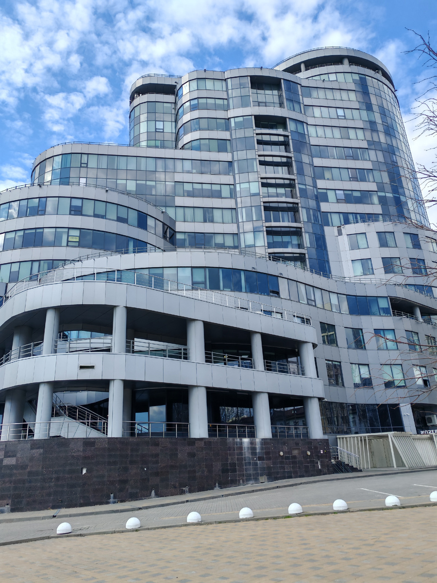 Само здание огромное, на первых этажах магазины, бутики и какие-то кафешки.