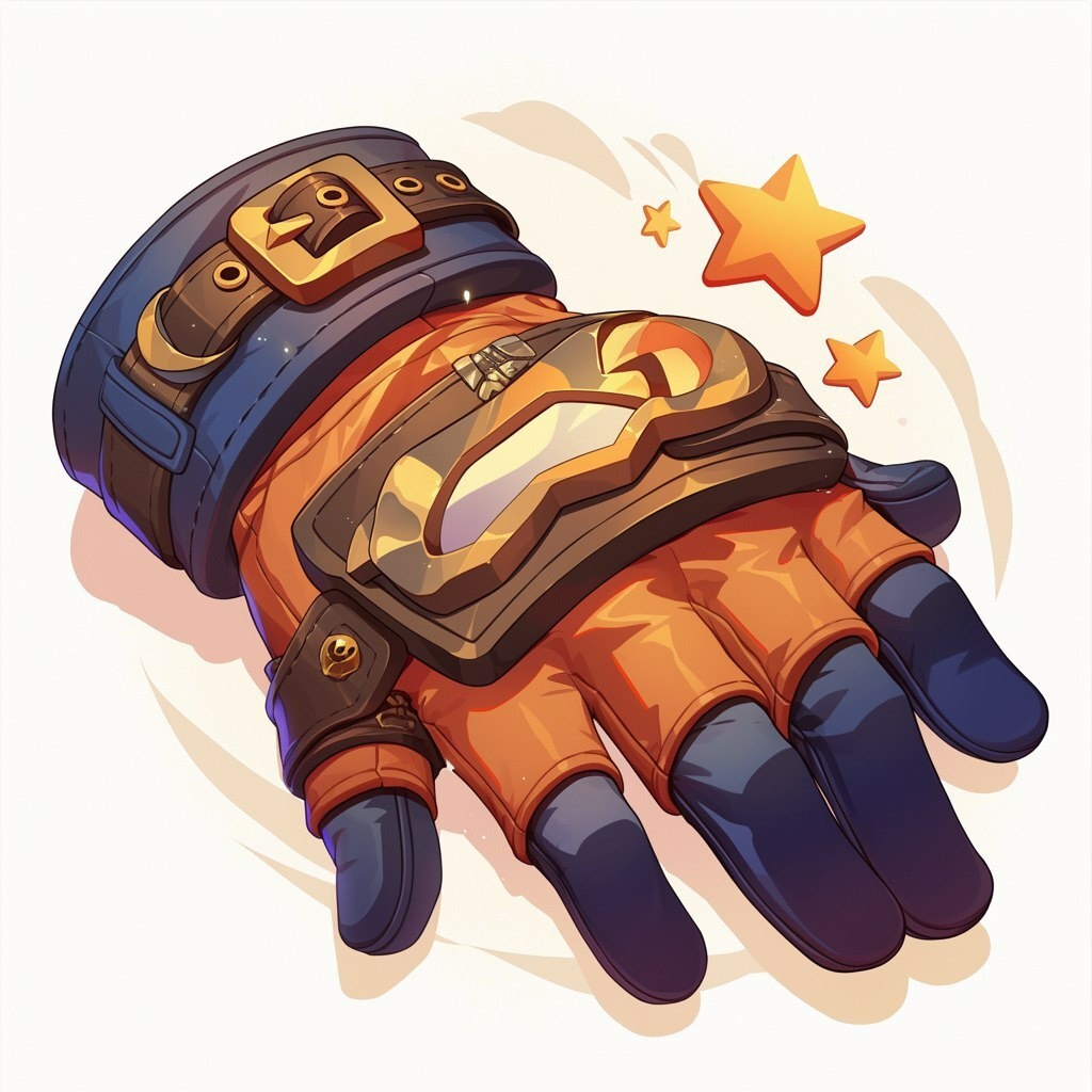 Создано на основе запроса: Leather gloves, Brawl Stars game graphic style, Hayao Miyazaki art style mix, game icon, leather gloves only, white background.
