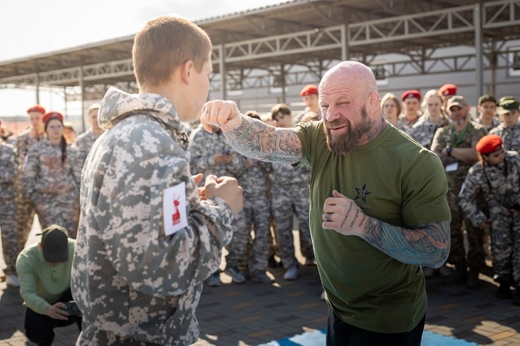 В Среднеахтубинском районе на площадке оборонно-спортивного лагеря «Авангард» боец смешанных единоборств Джефф Монсон провел открытую тренировку для волгоградских подростков. Как сообщает V102.RU со ссылкой на пресс-службу лагеря, чемпион мира по бразильскому джиу-джитсу поделился своим опытом и продемонстрировал эффективные техники ведения боя. После мастер-класса участники лагеря также смогли сфотографироваться с легендарным спортсменом и на память получить его автограф. Помимо оборонно-спортивного лагеря, за свой приезд в регион спортсмен провел мастер-класс в школе № 35 для профильных классов Росгвардии в городе Волжском, ФОК «Спартанец» в Тракторозаводском районе и спортивной школе №14 «Зенит» в Волгограде. Напомним, Джефф Монсон также приехал на похороны 16-летнего футболиста Максима Семенова. Фото: пресс-служба лагеря «Авангард»