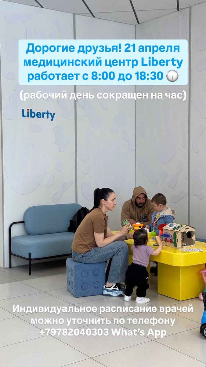 21 апреля медицинский центр Liberty работает с 8:00 до 18:30 🕡
