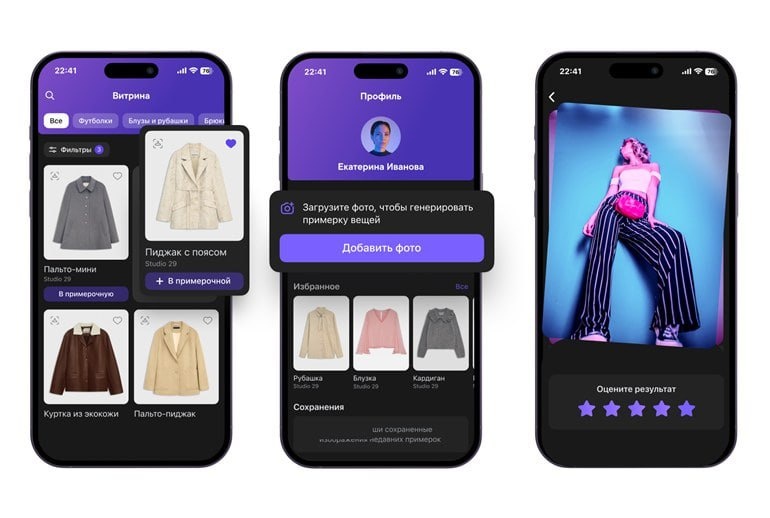 Диджитал-примерочная от Вконтакте А вы знали, что Вконтакте представили демонстрационную версию собственной виртуальной примерочной? Инструмент дает возможность пользователям соцсети собрать фото с одеждой от более 20 брендов России, включая YOU WANNA и LOVE REPUBLIC, Studio 29 Виртуальная примерочная позволяет сократить время между демонстрацией изделия и решения о покупке. Мини-приложение позволяет добавлять неограниченное количество вещей в избранное, сохранять уже готовые образы, просматривать их в будущем, собирать одежду от разных брендов в одном луке. А еще показывать результат друзьям и подписчикам в историях VK. Механизм прост – пользователь загружает свое фото в полный рост. Искусственный интеллект делает все сам – подбирает одежду, учитывая параметры фигуры человека, длину изделий, посадку. Если изделие нравится пользователю, то всего за один клик он может связаться с представителями бренда и приобрести товар. В каталоге – 14 категорий одежды: брюки, костюмы, футбо