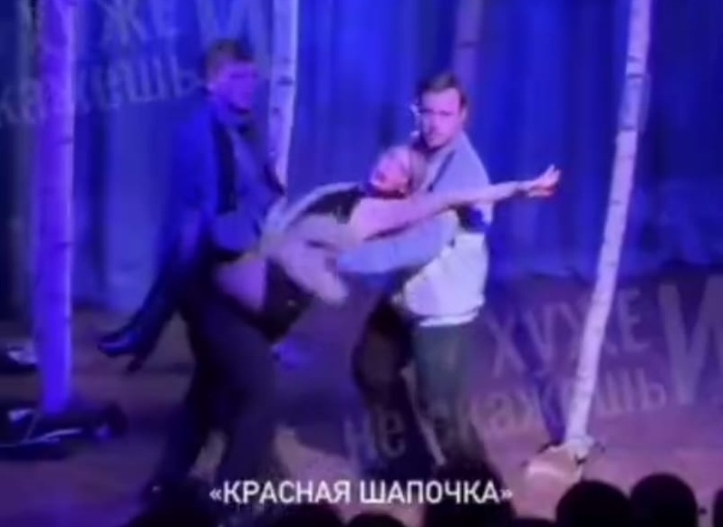Смотрите, какая чудная Красная Шапочка у нас появилась? - Роль "скромной, работящей и послушной девочки" в московском театре "Озеро" исполняет Таисия Вилкова. А вам не кажется, что в Москве собрался весь "свет" общества? И куда ни глянешь, везде оно светит. Насветило уже столько, что смотреть больно. Да и ладно бы светили на свои темы, я не знаю, в каких-нибудь тематических ночных клубах. Это соответствующие заведения с соответствующим свету репертуаром. Туда можно было бы даже Ксению Собчак пригласить - она вообще все новенькое и необычное очень любит. Она бы сделала интервью и кого-нибудь засветила. - Так ведь нет! Им театры подавай. - Они хотят чтобы это красиво называлось. Ну хорошо. Пусть тогда это называется "театр концептуального немецкого кино". - Ну нормально же? Нет, их театр называется "Озеро". - Озеро чего, я стесняюсь спросить? Но это еще не все. Таисия Вилкова это не только необыкновенная Красная Шапочка, а еще и просто хороший человек, которому ну просто не повезло. Или