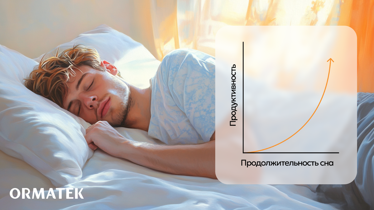 Когда речь идет о высокой продуктивности, все сводится к одному: качественный сон. Все мы слышали о том, как важно высыпаться, но что говорят об этом научные исследования? Почему правильный отдых так важен для нашей эффективности и как на этом можно сэкономить время и силы в повседневной жизни? Давайте разбираться, и, конечно, поговорим о том, как продукция ORMATEK поможет вам улучшить качество сна и повысить работоспособность. Научные исследования подтверждают, что сон напрямую влияет на нашу способность к концентрации, креативности и решению задач. По данным американского Национального института сна, регулярный и полноценный сон улучшает память, способствует лучшему усвоению информации и улучшает когнитивные функции. Когда мы спим, мозг обрабатывает и структурирует полученную за день информацию, что помогает принимать более обоснованные решения. Однако качественный сон — это не просто «сколько часов вы спите», а как вы спите. Проблемы с постельными принадлежностями, неудобная подушка