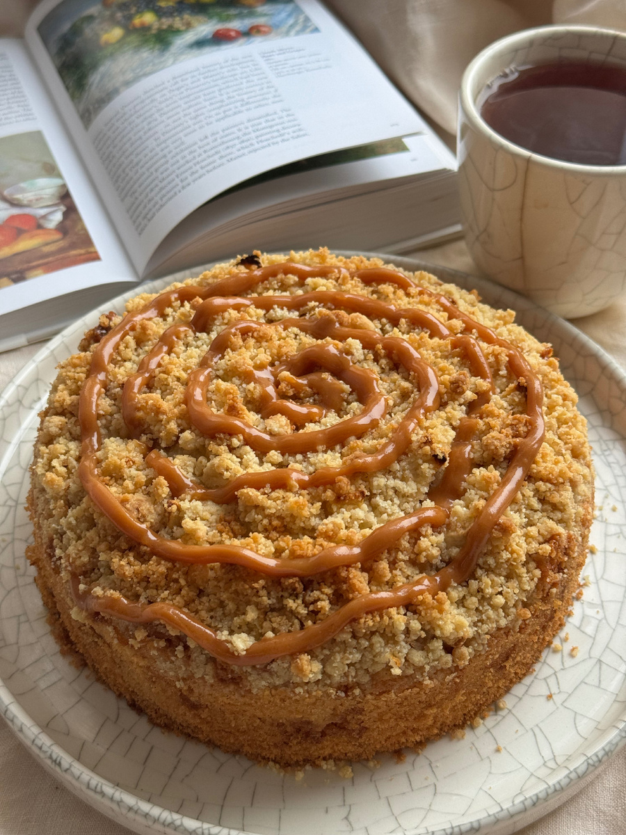 Эффектный и вкусный пирог к любому случаю Ингредиенты (на кольцо 18х6, в оригинале было 20): Карамель ⠀ ⠀ Крамбл ⠀ ⠀ Пирог ⠀ ⠀ Сборка Кольцо смажьте сливочным маслом и закройте дно фольгой, если протекает. Вылейте половину теста, раскидайте больше половины яблок, отсадите карамель спиралью через мешок. Вылейте вторую половину теста Раскидайте остаток яблок и крамбл. Выпекайте 50 минут при 180 С, остудите, посыпьте пудрой через сито, также отсадите карамель спиралью. Ставьте лайк и подписывайтесь, если понравилось!