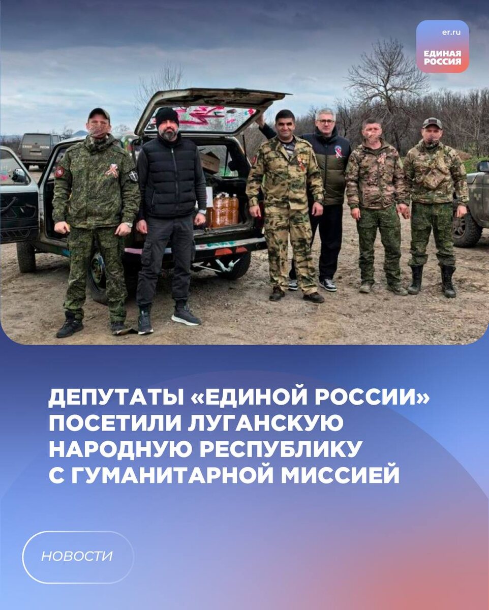 Помощь привезли депутаты Думы СК Егор Басович и Игорь Лавров, а также депутат Думы Шпаковского округа, руководитель АНО «Доброе сердце с вами» Карен Аванесян. Ставропольцы доставили военным автомобиль «Нива» для выполнения боевых задач. Перед отправкой на передовую депутаты вместе со школьниками написали на нём добрые пожелания бойцам. Участникам СВО также передали резину, буржуйки, масксети, свечи, средства гигиены, нательное бельё, продукты питания, соки, освящённые пасхи и питьевую воду. В рамках поездки депутаты также встретились с воспитанниками Антрацитовской специальной коррекционной общеобразовательной школы-интерната. Передали им гуманитарную помощь и провели патриотический мастер-класс «Георгиевская ленточка». К празднованию 80-летия Победы в Великой Отечественной войне дети мастерили броши из георгиевских лент. Олимпийский чемпион Игорь Лавров подарил детям буклеты «Знание–Спорт», подготовленные Российским обществом «Знание». #единаяроссия #своихнебросаем #zамир #ЕР26