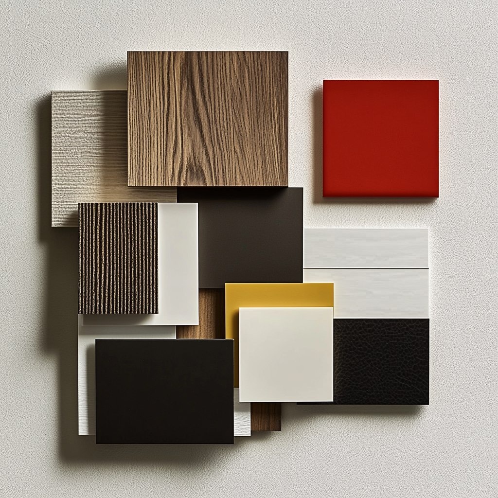Создано на основе запроса: top view interior design moodboard, white surface, oak tile sample, mahogany wood tile sample, white lacquared wood sample, white glass swatch sample, black anodized metal sheet sample, white linen fabric swatch, beige wool rug luxe feel sample, beige linen fabric swatch, black leather, dark green leather, neon yellow card swatch, red card swatch, black porcelain tile, modern luxe --- Автоперевод: Верхний вид интерьера дизайна настроения, белая поверхность, образец дубовой плитки, образец деревянной плитки из красного дерева, белый лаковой деревянный образец, образец белого стеклянного образца, черный анодированный металлический лист, образец белого льня Интересно вышло? 🤔 https://dzen.ru/id/65c0c65c86e4f837c27b24d7 #ИИ #AI #нейросеть #midjourney #art