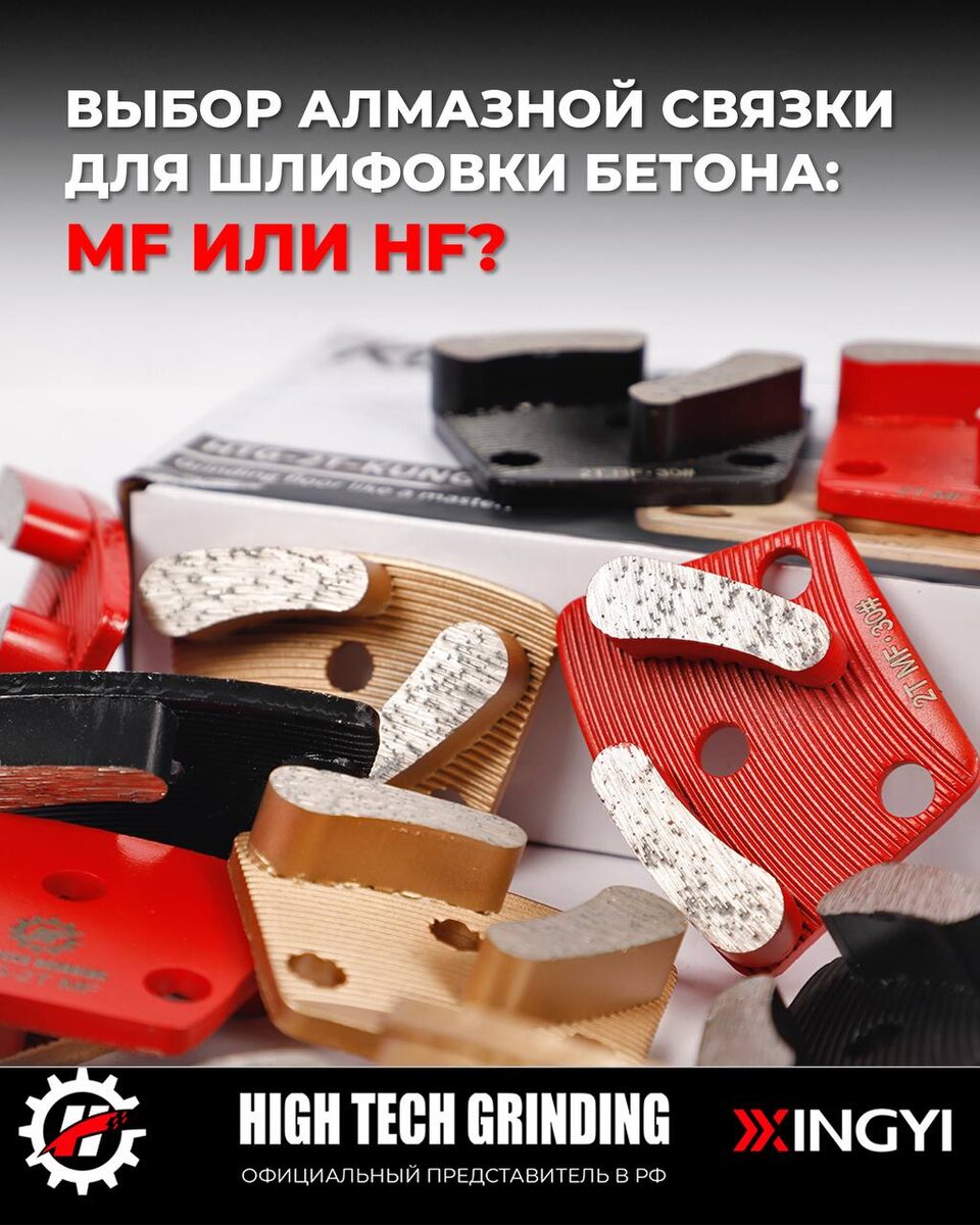 🔧 ВЫБОР АЛМАЗНОЙ СВЯЗКИ ДЛЯ ШЛИФОВКИ БЕТОНА: MF или HF? Привет, друзья! Сегодня поговорим о нюансах подбора расходников для шлифовки. 💎 💬 Частый вопрос от клиентов: «Какую связку выбрать для бетона М350 — MF или HF?» Напомним: - HF (Hard Floor) — жесткая связка. - MF (Medium Floor) — средняя связка. 📌 Рекомендации: 1. Для легких машин (например, GX 65): — Используйте HF! Почему? Меньший вес машины компенсируется жесткостью связки — алмазная крошка эффективно вскрывается даже при небольшом давлении. 2. Для тяжелых машин (более 400 кг): — Выбирайте MF! Почему? Большая масса машины «давит» на оснастку, и средняя связка обеспечивает оптимальный износ алмазов + высокую скорость работы. ‼️ВАЖНО: Эффективность зависит от баланса между массой оборудования и твердостью связки. Слишком жесткая связка на легкой машине будет «забиваться», а мягкая на тяжелой — быстро изнашиваться. 🫖 НОВИЧКАМ НА ЗАМЕТКУ: ☑️ Связка — это материал, удерживающий алмазы в оснастке. Чем она мягче, тем быстрее откры