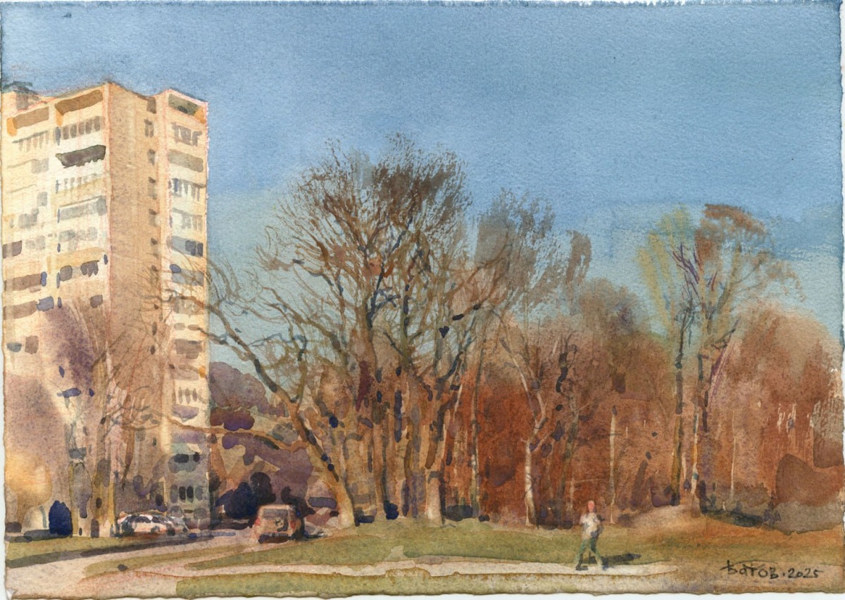20250416 Тёплый стан. I / Teply Stan street. I. . Moscow / 21x30 cm / plein air watercolor. Краски Pinax Extra. Бумага "Палаццо" хлопок 300гр. #Pinax_Extra #palazzo_watercolor_paper #urbansketchers #пленэр #акварель #этюды #watercolor #АкварельнаяМосква #WatercolorMoscow #pleinair_russia