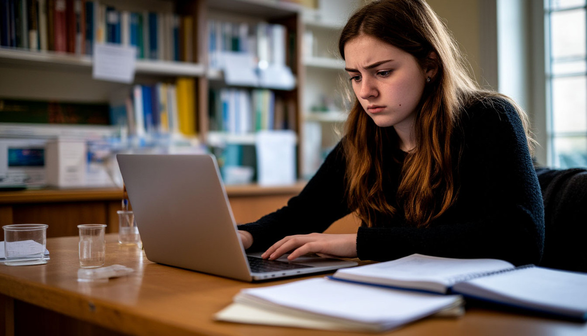 Алина смотрела на экран ноутбука, пока её пальцы судорожно сжимали края стола. Результаты экзаменов по химии – 62 балла из 100. «Неужели опять?» – прошептала она, чувствуя, как ком подступает к горлу.