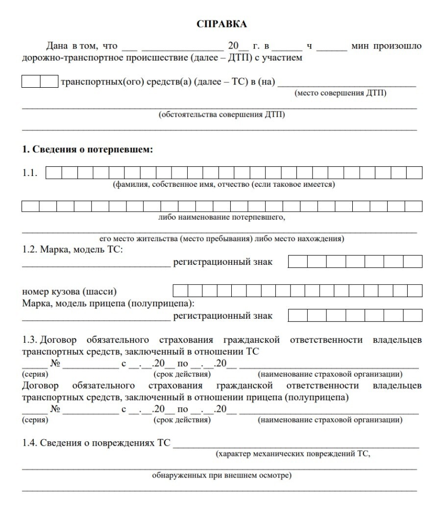 В Беларуси утвердили новую форму бланка справки о ДТП, выдаваемой Госавтоинспекцией по запросу страховой организации. Это предусмотрено приказом Белорусского бюро по транспортному страхованию от 14.04.2025 № 19-од. Фрагмент нового бланка. Скриншот с сайта pravo.by Документ вступает в силу с 23 апреля — тогда же, когда и указ № 108 «О страховании». По-другому будут выглядеть и бланки «автогражданки». Кроме того, с этой даты сократят минимальный срок обязательного страхования гражданской ответственности для владельцев транспортных средств в Беларуси (с 15 до 5 дней). Также будет запущена система союзного ОСАГО. В соответствии с указом увеличат лимит страхового возмещения при оформлении ДТП без вызова ГАИ до 150 базовых величин (6,3 тысячи рублей). Сегодня ограничение составляет 800 евро. О других новшествах в страховании, которые станут актуальны с конца месяца, мы рассказывали здесь. Фото: архив av.by