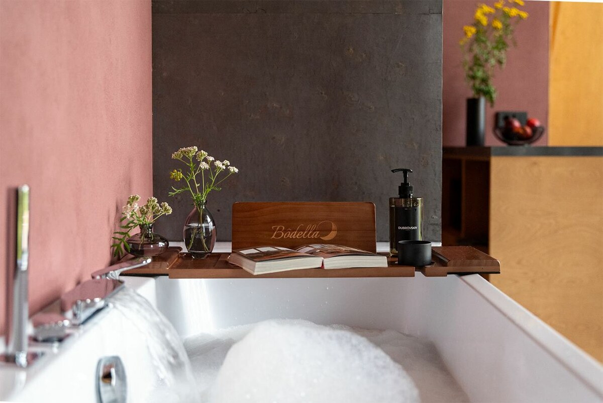 Реализованный проект: зона ванной в глэмпинге Трофимов берег Акцентная стена с облицовкой торца в цвете Multicolor. Интересное сочетание глубоких коричневых оттенков сланца с приглушенным розовым 🎀