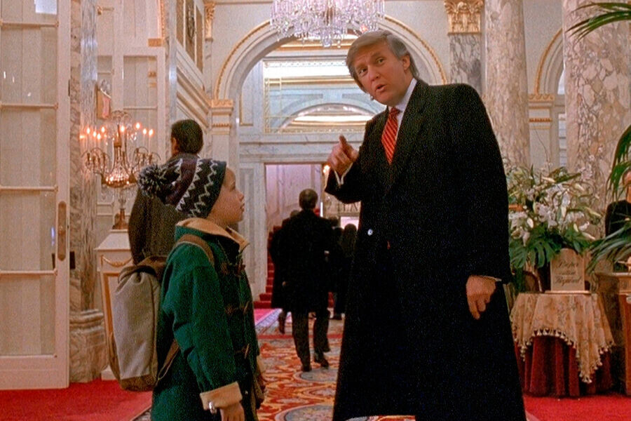 В семисекундной эпизодической роли в кассовом хите 1992 года будущий президент даёт звезде Маколею Калкину указания в знаменитом нью-йоркском отеле «Плаза», которым в то время владел Трамп, известный тогда только как эксцентричный магнат в сфере недвижимости на Манхэттене.