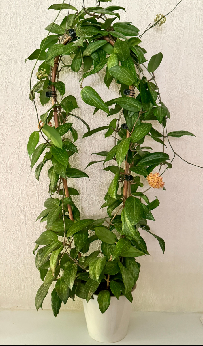 Хойя Фитчи — экзотическое растение с удивительной историей Происхождение растения Хойя Фитчи (Hoya fitchii) принадлежит семейству ластовневых (Asclepiadaceae), родиной которого является Юго-Восточная Азия, преимущественно Малайзия и Индонезия. Впервые была обнаружена ботаником Чарльзом Лемером в XIX веке и названа в честь английского садовода Джона Фитча, известного своими успехами в разведении редких растений. Этот вид хойи привлек внимание благодаря своим необычным листьям и ароматным цветкам, быстро завоевав популярность среди коллекционеров комнатных растений. Сегодня хойя Фитчи выращивается во многих странах мира, включая Россию, как декоративное домашнее растение. Внешний вид Хойя Фитчи представляет собой вечнозелёное лазящее растение с длинными побегами, покрытыми овально-продолговатыми листьями насыщенного зелёного цвета. Листья гладкие, блестящие, плотные и мясистые, иногда слегка морщинистые. Это придаёт растению особый шарм и делает его привлекательным элементом интерьера.