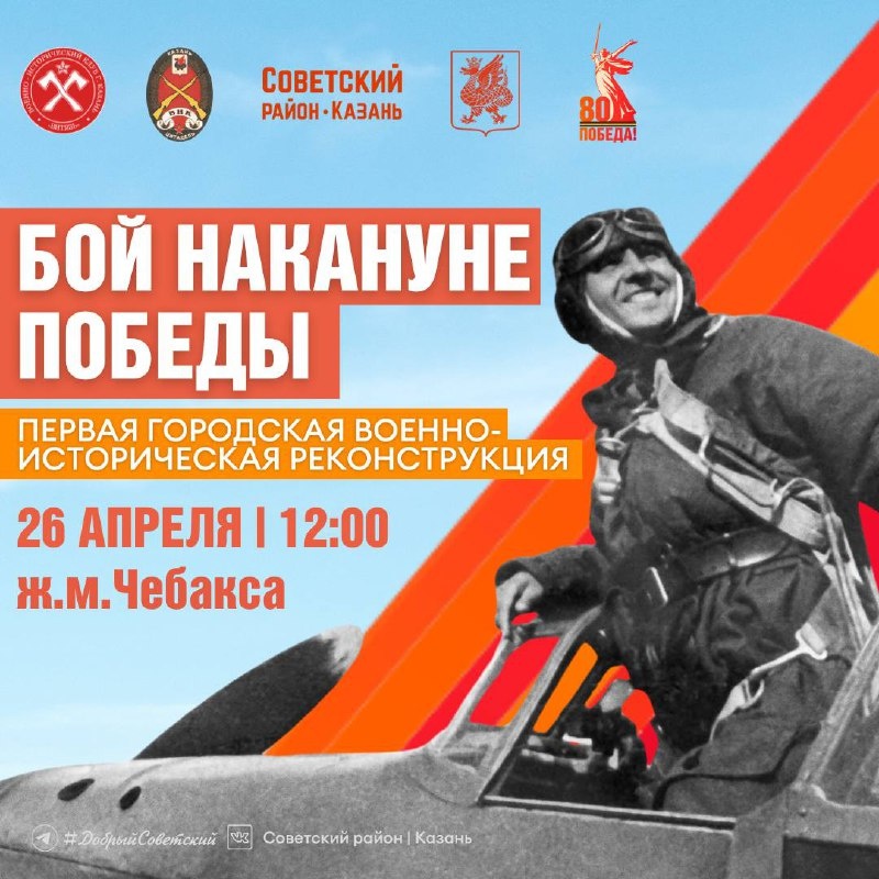🪖 «Бой накануне победы»: первая городская военно-историческая реконструкция В поселке Чебакса пройдет масштабная и зрелищная реконструкция реальных боев с участием пехоты, бронетехники и пиротехники, приуроченная к 80-летию Победы в Великой Отечественной войне. Подробнее о событии — в карточках ⬆️ 📌 Также на площадке будут концерт, мастер-классы, полевая кухня, детская квест-игра и многое другое. ⏰ 26 апреля, с 12:00 📍 пос.Чебакса @sovetskiy_kzn Больше информации в нашей группе, переходите
