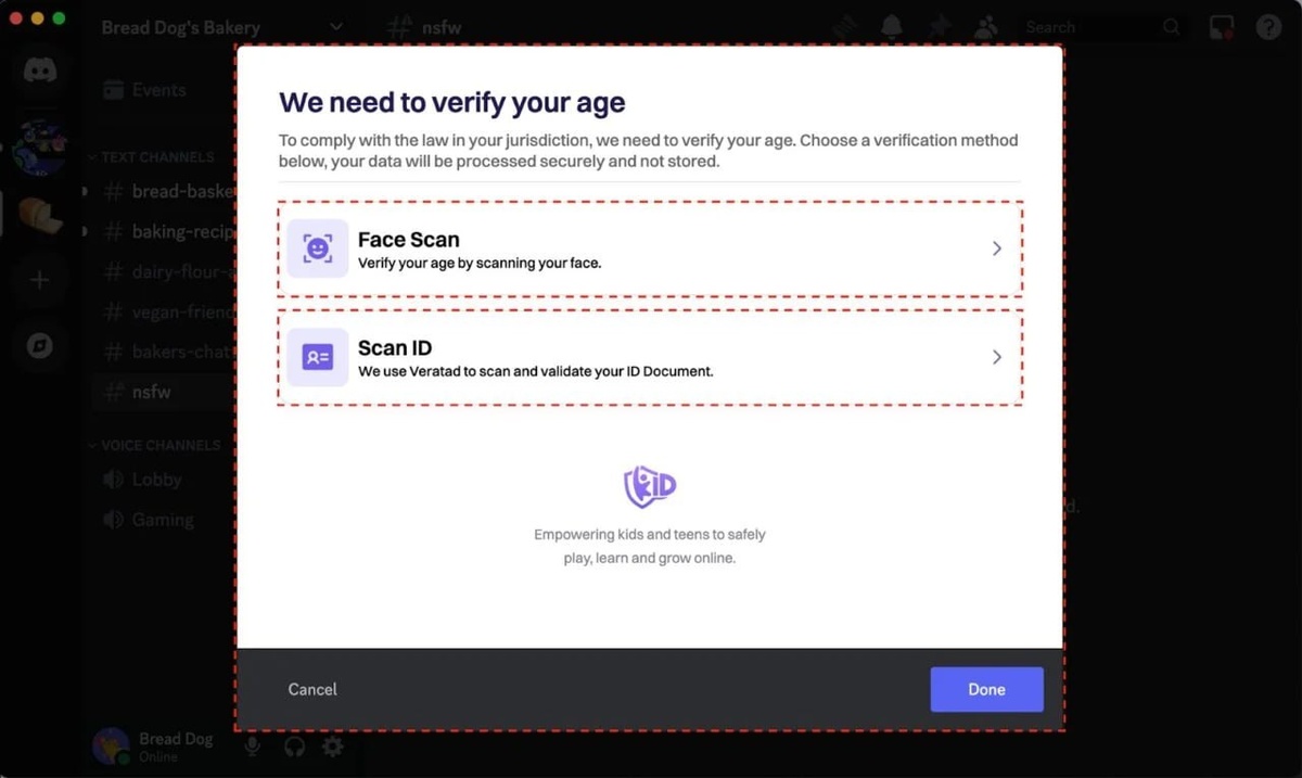 ⚡️В Discord появилась обязательная проверка возраста, которую требуют пройти при попытке посмотреть 18+ контент. Пользователям из Великобритании и Австралии уже начали прилетать уведомления с просьбой подтвердить свой возраст нужно сделать селфи или загрузить удостоверение личности. Попытка обмануть систему может привести к блокировке аккаунта. Чёрный день для всех школьников. CtrlAltDelights- подписаться