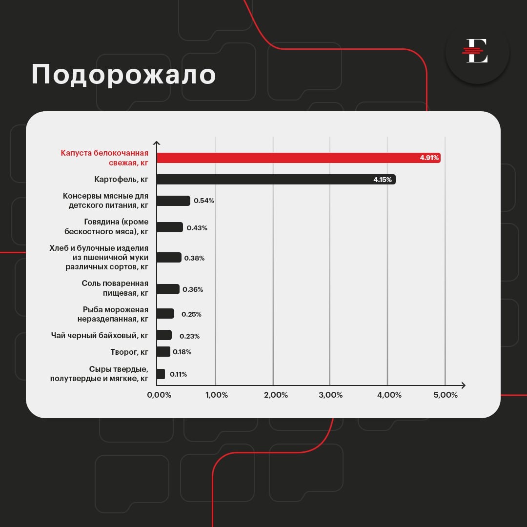 ❓Что подорожало, а что подешевело? Новая сводка по динамике средних потребительских цен на некоторые виды товаров и услуг, которые включены в систему непрерывного мониторинга цен Росстата. Что подорожало, а что подешевело за неделю с 7 по 14 апреля 2025 г.? 🥬 Больше всего выросли цены на белокочанную капусту: +4,91% 🥚 Сильнее всего упали цены на куриные яйца: -1,57% Заинтересовались тут ростом цен на черный чай. После просадки в 2023 г., по итогам 2024-го импорт этого продукта увеличился на 8%, до 129 тыс. тонн (по данным ассоциации «Росчайкофе»), 90% пришлось на черные сорта. Ключевыми поставщиками являются Индия, Китай, Шри-Ланка, Кения. Удорожание чая связано как с колебаниями курса валют, так и с увеличением логистических издержек из-за роста цен на топливо. Повлиял и еще один фактор: рост спроса из-за изменений потребительских привычек покупателей. Они постепенно происходят по причине сильного (почти вдвое в 2024 г. по сравнению с 2023-м) подорожания кофе. Те, кто раньше пр