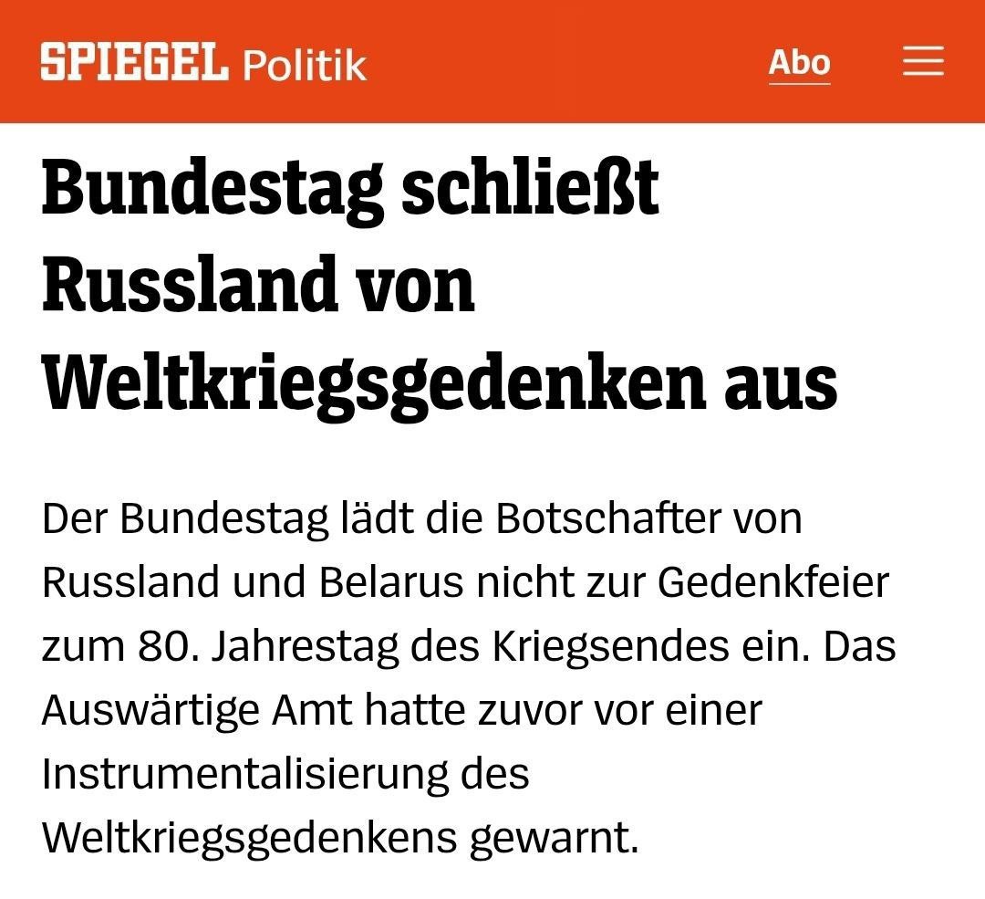 ❗️ Бундестаг исключил Россию из мероприятий, посвященных Второй мировой войне.