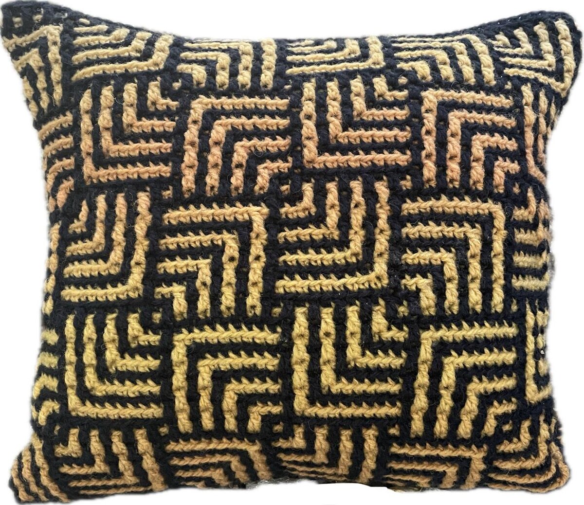 Подушка «Оптическая иллюзия» Мозаичное вязание крючком позволяет вязать в разных направлениях, чем можно воспользоваться при вязании подушек. Узор «Оптическая иллюзия» как раз подойдет – раппорт не очень большой, а геометрию всегда можно удачно встроить в интерьер. Даю вам сразу две схемы – и для кругового вязания, и для центрового, но обратите внимания, что в центровой схеме секторы не идентичные друг другу, это значит, что при вязании нужно будет внимательно следить за схемой. Я эту подушку вязала по кругу: посчитала, сколько раппортов умещается в нужную длину и в соответствии с этим набирала нужное количество петель. Пряжа: Дундага 6/2, крючок 5,5. Схема в Excel: https://docs.google.com/spreadsheets/d/1mXT4wrvg2GkT6O3-LfCFPIvYbz7tEGRqoprI9c2Z4gE/edit?usp=sharing
