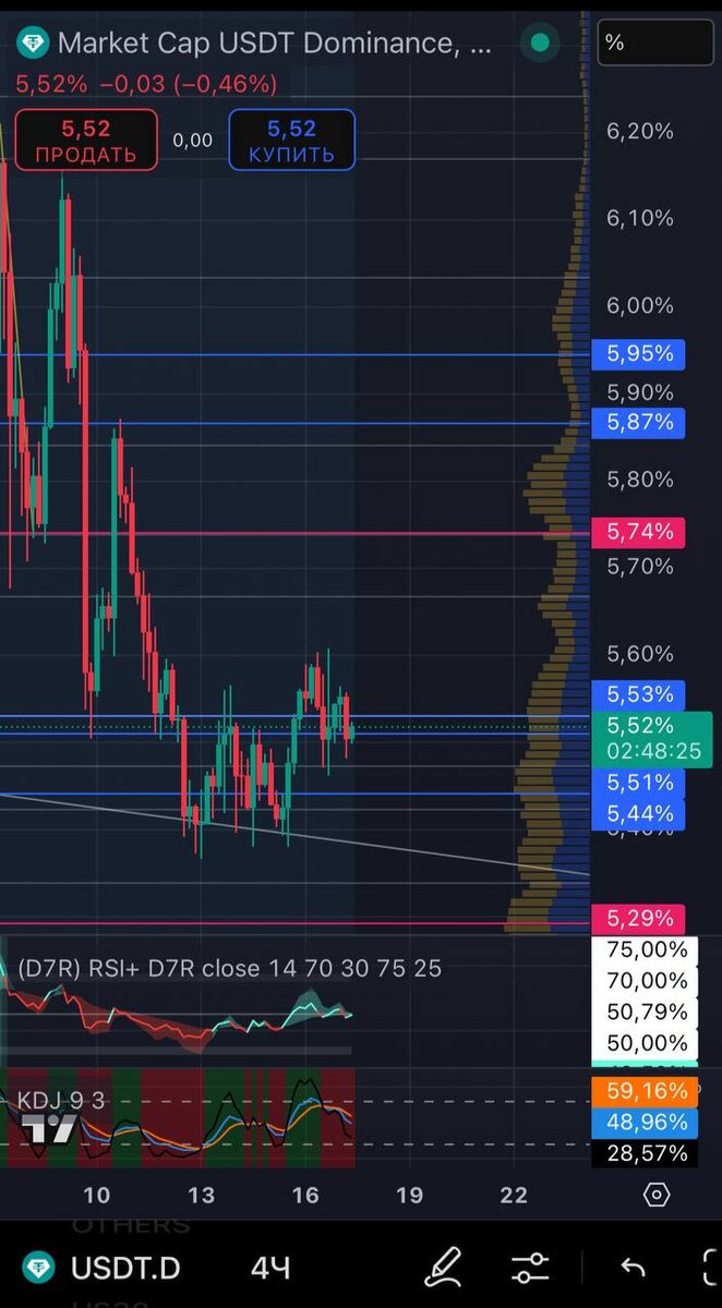 В ответ на пост #Usdt.d смотрится Лонгово начал бы на набирать Лонги когда достигнет 5.74%
