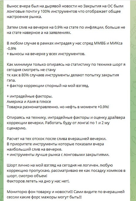 🆘В рамках обучения смотрим обзор. Это ежедневный обзор который выходит в закрытом ТГ канале ДО начала сессии. 1. Разбор вчерашней сессии. Только ШОРТ! 2. План на сегодня, ТОЛЬКО тех отскок опираясь на общую ситуацию. + скрин с планом из закрытого ТГ канала. ____________ ❗️План отработал на 100% Отскочили до верхней границы боковика по ММВБ. тк как драйвера роста нет, от него ушли в коррекцию, опираясь на этот уровень по ММВБ, закрыли все лонги. ____________ Ютуб👉https://youtu.be/HOFCHTOmS54 Рутуб👉https://rutube.ru/video/private/9f260056a9ac178e07f0d95d1796a9a8/?p=pirGKZIda9tWsLumj1BTNA ПС: Один этот обзор за щеку даст любому платному курсу!!! тк он основан на живых сессиях!!!! __________ 🆘СМОТРИ ОБЗОРЫ!!! Хочешь ежедневно получать такую информацию до начала ОС?? Присоединяйся!!! ТГ канал @LaktionovPrivat_bot - Подписка отбивается за одну сделку!