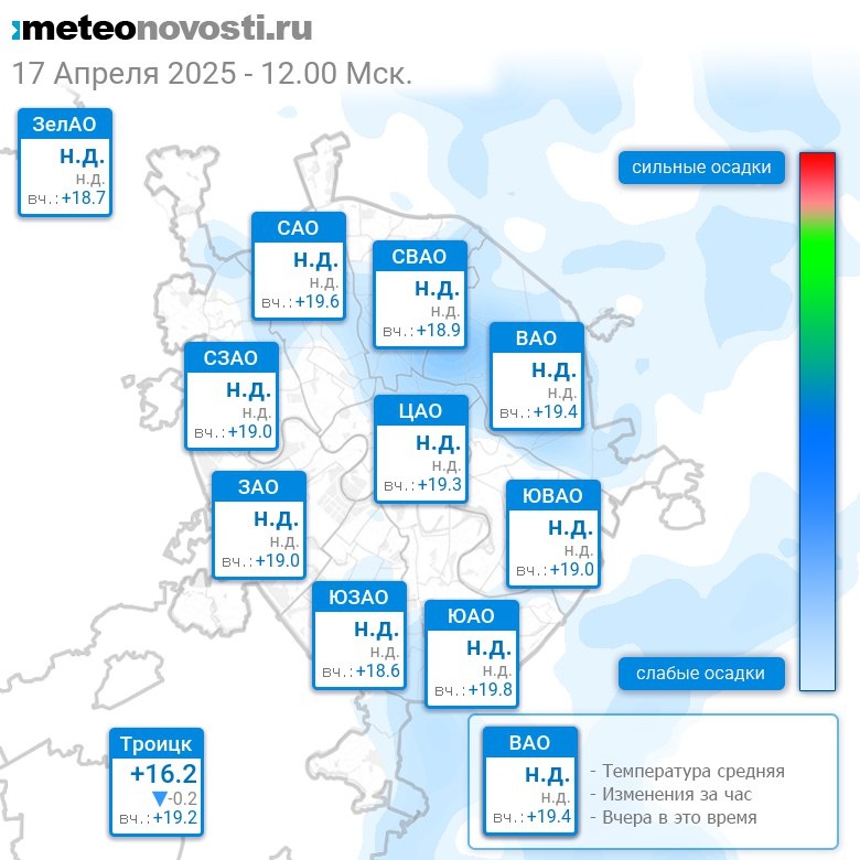 В 12:00 в Москве было от +14.6°C до +17.5°C, средняя температура +16°C #погода #Москва #весна #температура #17апреля #четверг