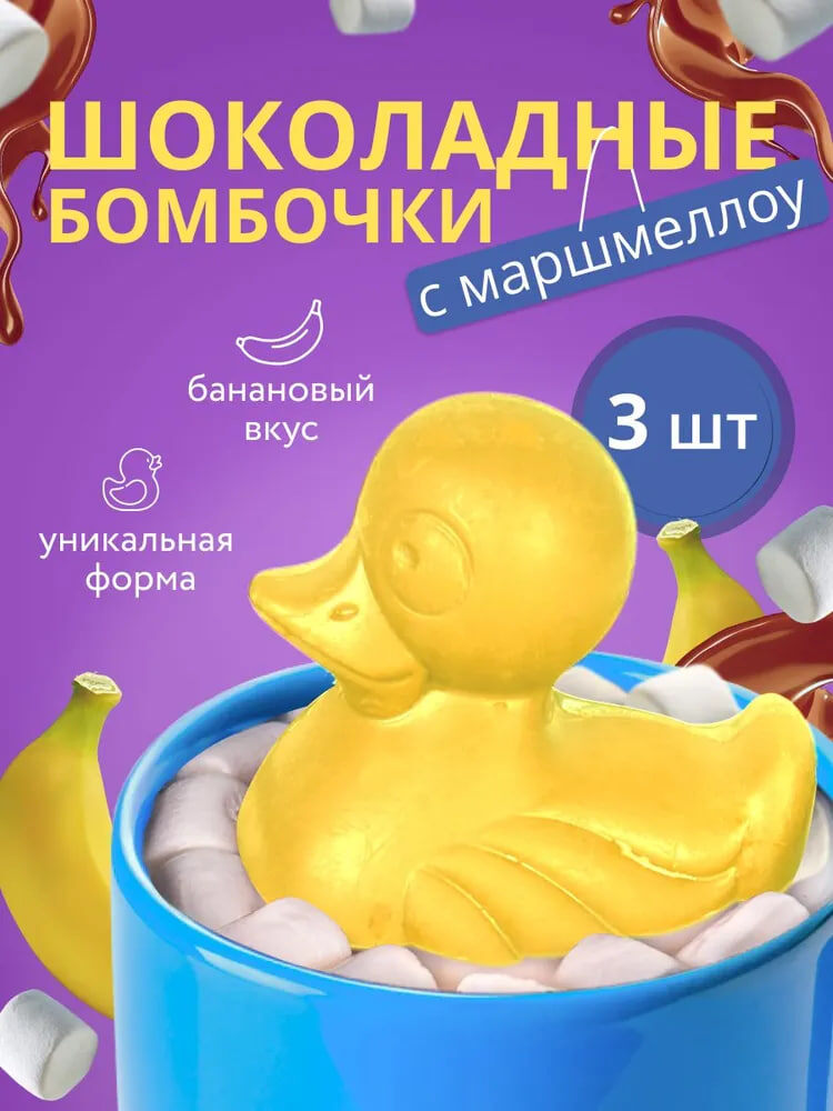 НАША НОВИНКА! В отличие от традиционных круглых бомбочек, наши изготовлены в форме очаровательного утенка. Эта креативная задумка не только делает десерт визуально привлекательным, но и вызывает улыбку у каждого, кто видит его впервые. В одном наборе три упаковки, которые можно разделить и подарить отдельно. Этот оригинальный подарок подходит для всех случаев. Вкусный, сладкий, полезный подарок отлично подходит для детей. https://www.ozon.ru/product/shokoladnye-bombochki-utenok-bananovyy-s-marshmellou-vkusnyy-podarochnyy-nabor-iz-3-shtuk-1916112834/