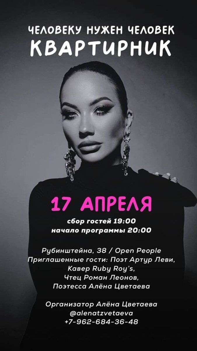 17 апреля в 19.00. Сбор гостей В ПРОГРАММЕ: Свои стихи: А Цветаева