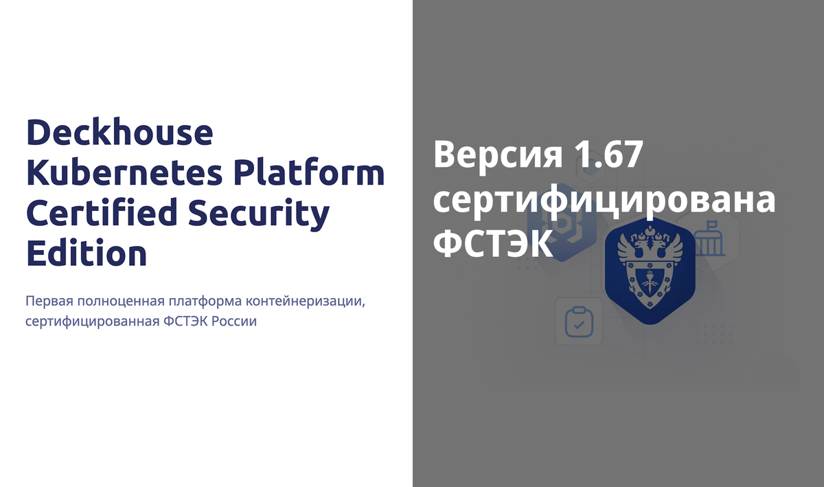 В октябре 2024 года Deckhouse Kubernetes Platform (DKP) получила сертификат Федеральной службы по техническому и экспортному контролю (ФСТЭК России), который подтверждает, что редакция Deckhouse Kubernetes Platform Certified Security Edition (DKP CSE) соответствует требованиям 4-го класса защиты информации. Это значит, что платформа прошла процедуру оценки соответствия и может использоваться для защиты конфиденциальной информации, то есть её можно внедрять в государственных организациях, банках и учреждениях, где обязательно использование продуктов, сертифицированных ФСТЭК России. Мы выпускаем новую версию сертифицированной редакции примерно раз в три месяца, что позволяет сочетать стабильность и безопасность вместе с оперативным предоставлением доступа к новым функциям и исправлениям. С момента получения сертификата вышло уже два обновления DKP CSE, последнее из которых (v1.67) — 10 апреля. Расскажем, чем может похвастаться актуальная версия сертифицированной редакции. Безопасность: М