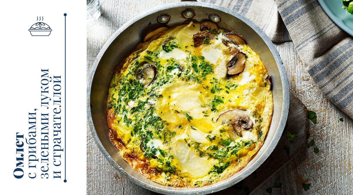 Омлет, воспевающий весну: с ранневесенними грибами, зеленым луком и страчателлой.