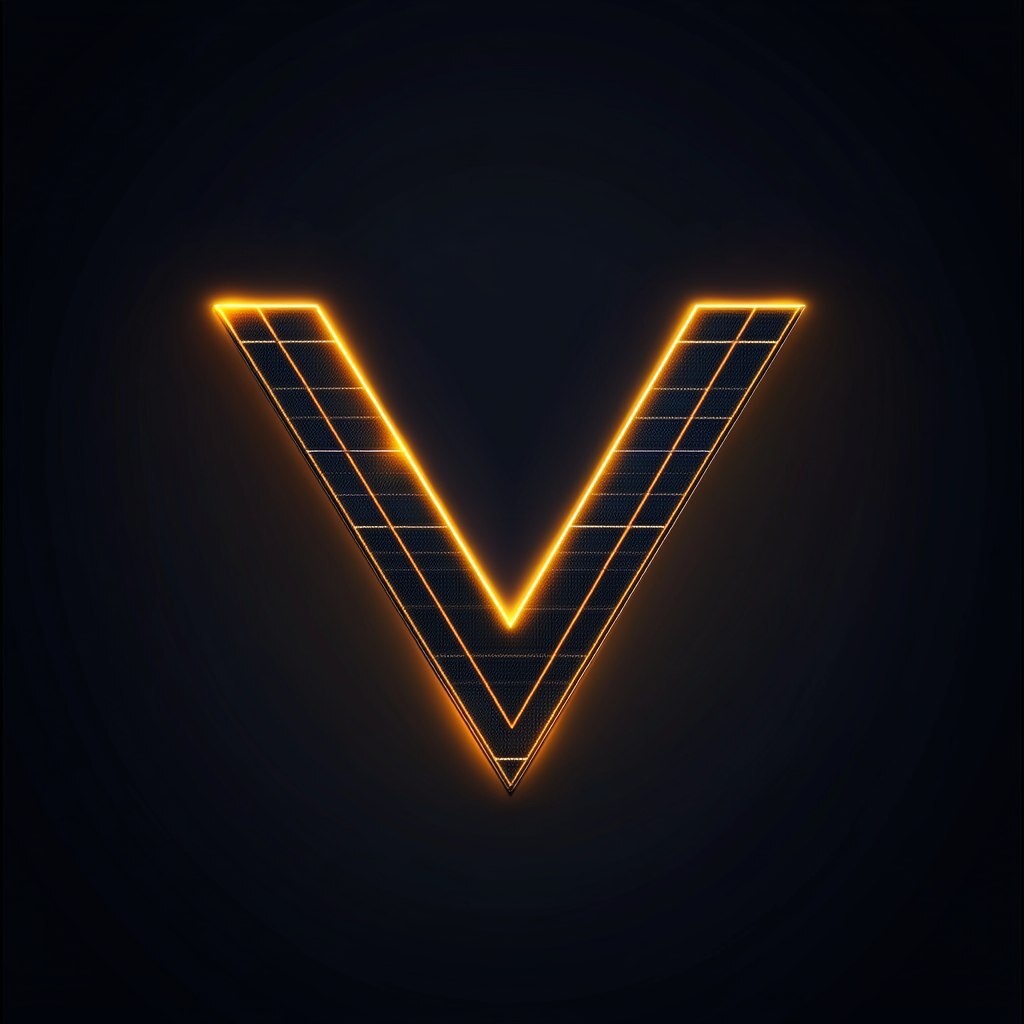 Создано на основе запроса: logo for innovative energy company VOIQ ENERGY, stylized V shaped like a solar panel, glowing lines symbolizing