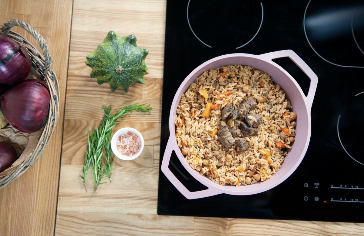 Жаровня объединяет в себе сразу несколько функций: сковороды, казана, кастрюли и даже формы для запекания. Это универсальный помощник для запекания мяса и рыбы, тушения овощей, томления плова или рагу, приготовления супов, лазаньи и выпечки. Жаровня — нужная вещь на каждой кухне. Но важно выбрать ту, которая не подведёт. На рынке легко встретить модели, которые красиво выглядят и стоят дешево, но на практике быстро разочаровывают. Рассказываем, на какие детали стоит обратить внимание при покупке, чтобы не тратить деньги впустую. Корпус — это основа. Тонкие стенки быстро перегреваются, а сама жаровня теряет форму от перепадов температуры. Если толщина стенки — 3 мм или меньше, стоит задуматься. Такая посуда вряд ли прослужит долго. Жаровни TESORO из литого алюминия выдерживают активное использование. Самая оптимальная толщина стенок - 3,5 мм. Толстостенный корпус равномерно распределяет тепло, дольше сохраняет температуру и позволяет готовить блюда, раскрывая их вкус максимально глубок