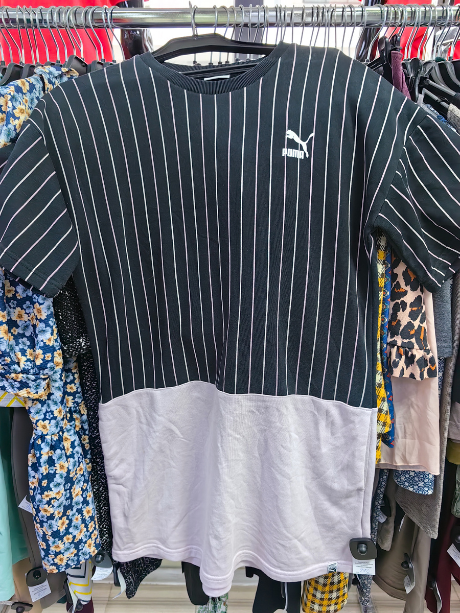 Добрый день, меня зовут Тоня и сегодня мы с вами отправимся в секонд Хэнд на скидку - фиксированная цена всё по 350 рублей. Обзор не очень большой, народу было много, вещей хороших осталось мало, торопили и толкались. Но я нашла кое-что интересное и даже купила что-то для себя. Смотрим! Сначала то, что привлекло внимание, просто на вешалках, не брала в примерочную. Платье из трикотажного хлопка с небольшим процентом ПЭ от пумы, оригинальное и даже в хорошем состоянии. Платье от Зары с красиво оформленной горловиной. Состав почти сплошной пэ, но бисер красивый) Блузка из вискозы без опознавательных знаков, но очень красиво окрашена, серенькая 😍 Приятная тактильно, вискоза такого качества иногда напоминает шёлк. Из обуви обратила внимание на эти туфли от тодс. Они совсем мало ношеные, но замша пострадала при транспортировке, очень жаль. Цвет просто нереально красивущий. Теперь примерки. Новенький жакет из смесового льна. Плотный, держит форму. Длинный жилет из шерсти, понрави