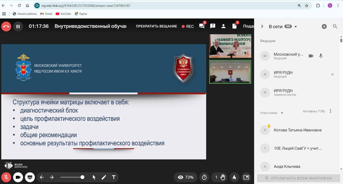 ☺️ 17 апреля 2025 года на базе Института русского языка РУДН при поддержке Московского университета МВД России им. В.Я. Кикотя прошел первый из серии внутриведомственных обучающих онлайн-семинаров с разъяснением положений, содержащихся в Стандарте профилактики незаконного потребления наркотиков, устанавливающем единые требования к осуществлению комплексной антинаркотической профилактической деятельности. Семинар был организован Департаментом координации информационной политики и комплексной безопасности Минобрнауки России во исполнение пункта 2.2.2 Протокола заседания Государственного антинаркотического комитета от 19 декабря 2024 года № 55. Заместитель начальника кафедры административного права Московского университета МВД полковник милиции Глеб Василенко подробно объяснил структуру и порядок применения нового документа. По словам докладчика, задача разработчиков заключалась в создании простого, универсального и эффективного инструмента, доступного всем организациям и специалистам не