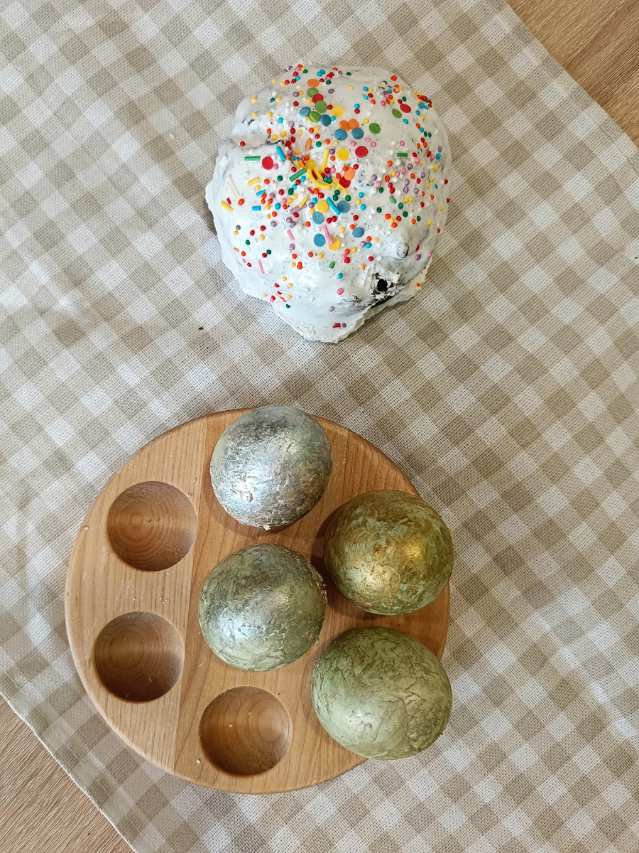 Мы с моей доченькой Агатой решили показать Вам 2 вида декора для яичек на Светлую Пасху 🐣 Вам понадобится: - яйца - чай каркаде - куркума - уксус - шиммер - белок яйца Дополнительно: перчатки, кисточка Давайте приступать! Для начала мы положили яйца в кастрюли и налили воду. Затем туда добавили 2 горсти чая каркаде и 1 столовую ложку куркумы. Отправляем на огонь. Когда закипит, добавляем 2 столовые ложки уксуса и оставляем вариться 10 минут. Даём постоять 45 минут в кастрюле, достаем, даём остыть. И вот первый декор готов - малахитовые с хаотичным неаовторяющимся узором. Переходим ко второму варианту. Берем эти же малахитовые яички. Подготовили белок от яйца. Смазываем кисточкой ладонь в перчатке и высыпаем на ладонь немного шиммера, берем яйцо в ладонь, крутим вертим его. И таким образом получается малахит с лёгким блеском. Делитесь, какой вариант нравится больше?! Мне больше классический малахит